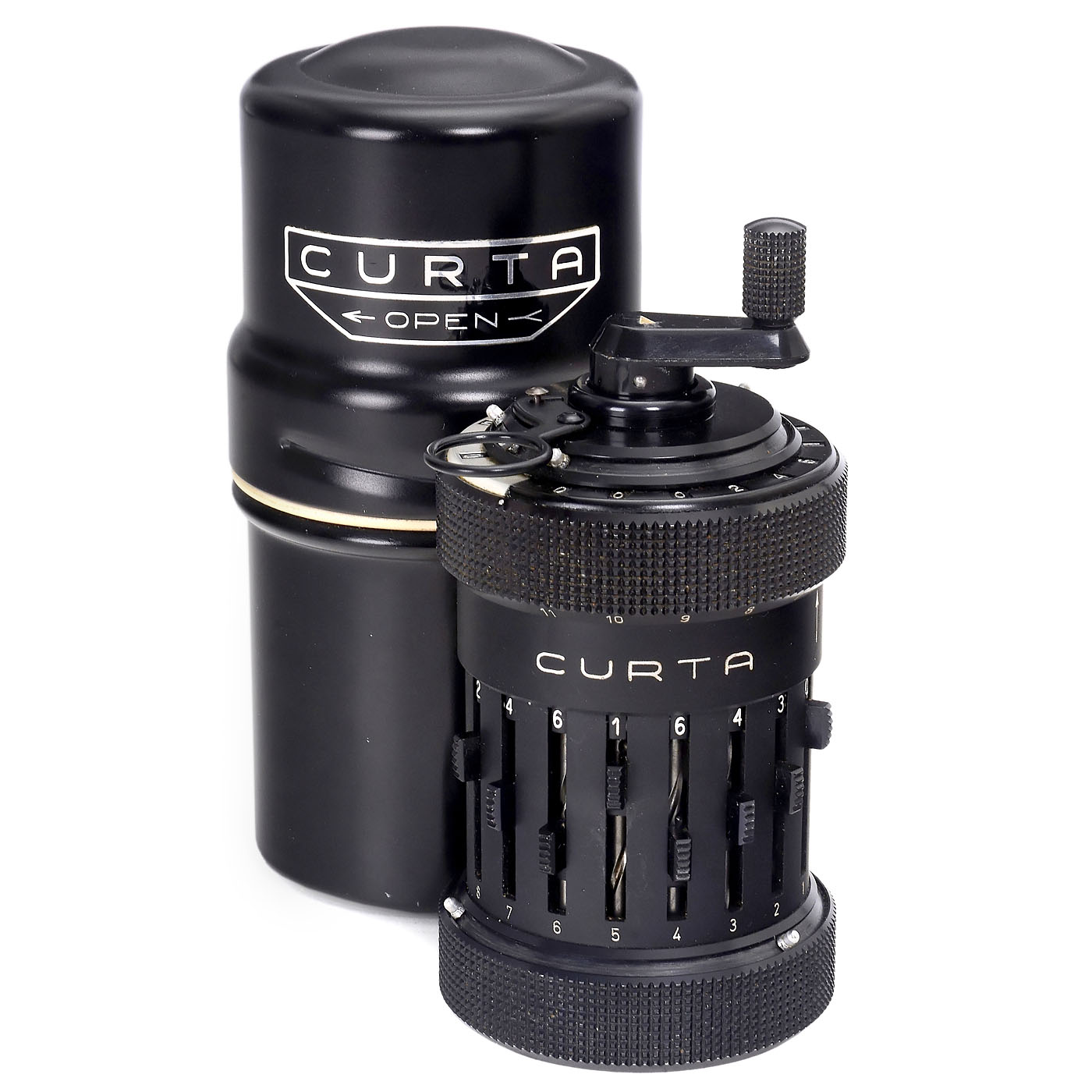 Curt Herzstark, Vienna and Liechtenstein. Serial no. 60332, flat setting knobs, with 8, 11 and 6 digits, with original tin case, excellent working condition. The smallest miniature stepped-drum machine and a true milestone in calculating history!