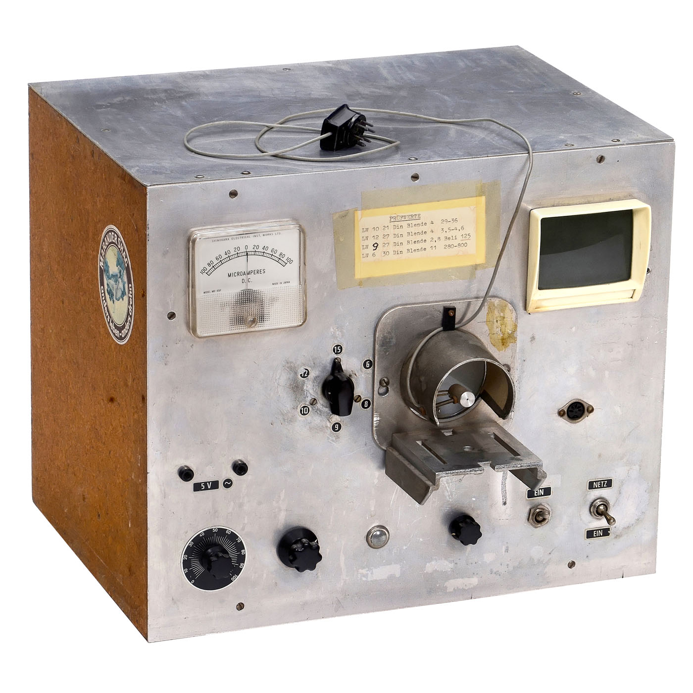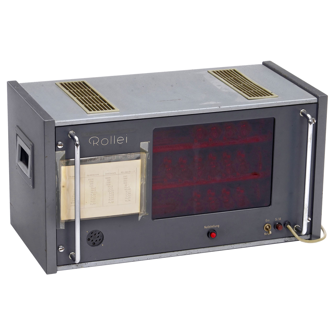 Rollei, Braunschweig. 1) Rollei camera exposure meter tester type EKZM/U-D IC 68, dimensions 56 x 30 x 27 cm. This enabled Singapore to begin its journey to becoming a high-tech center. ÿ And: 2ÿ3) Two other instruments from Rollei production during this period. ÿ Electrical functions not tested. Rare exhibition material on the history of the German camera industry. Something special for a Rollei collection!