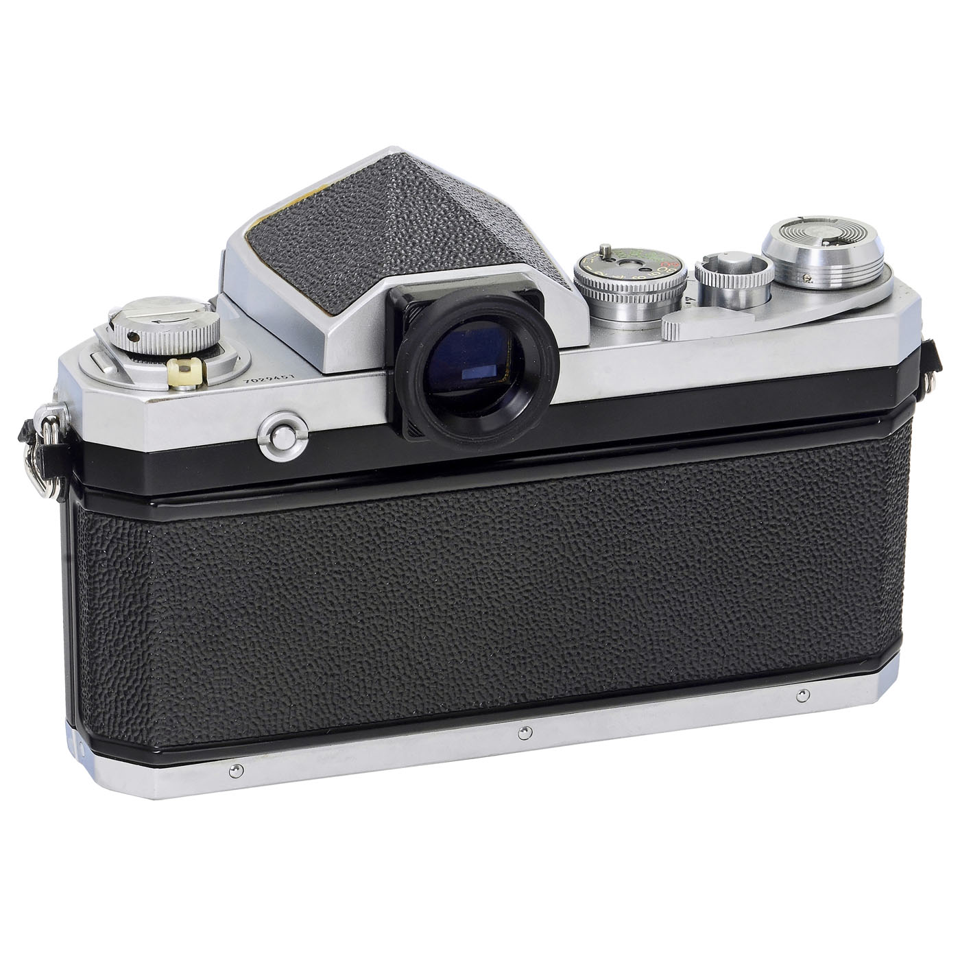 Nikon, Japan. No. 7029451, chrome. Nikon's first 35mm SLR, built for professional use, with an interchangeable viewfinder system and no self-timer lever. 24 x 36 mm format, titanium focal plane shutter at 1ÿ1/1000 sec., motor mount for F36 and F250. With Nikkor-HC Auto 1:2 f=50 mm, no. 2140693. A Nikon F variant in very good condition. Nikon provided this version of the Nikon F free of charge to war correspondents during the Vietnam War. This was Nikon's breakthrough in the professional field. ÿ In addition: "Das Nikon Handbuch" by Peter Braczko, 1st edition from 1990.