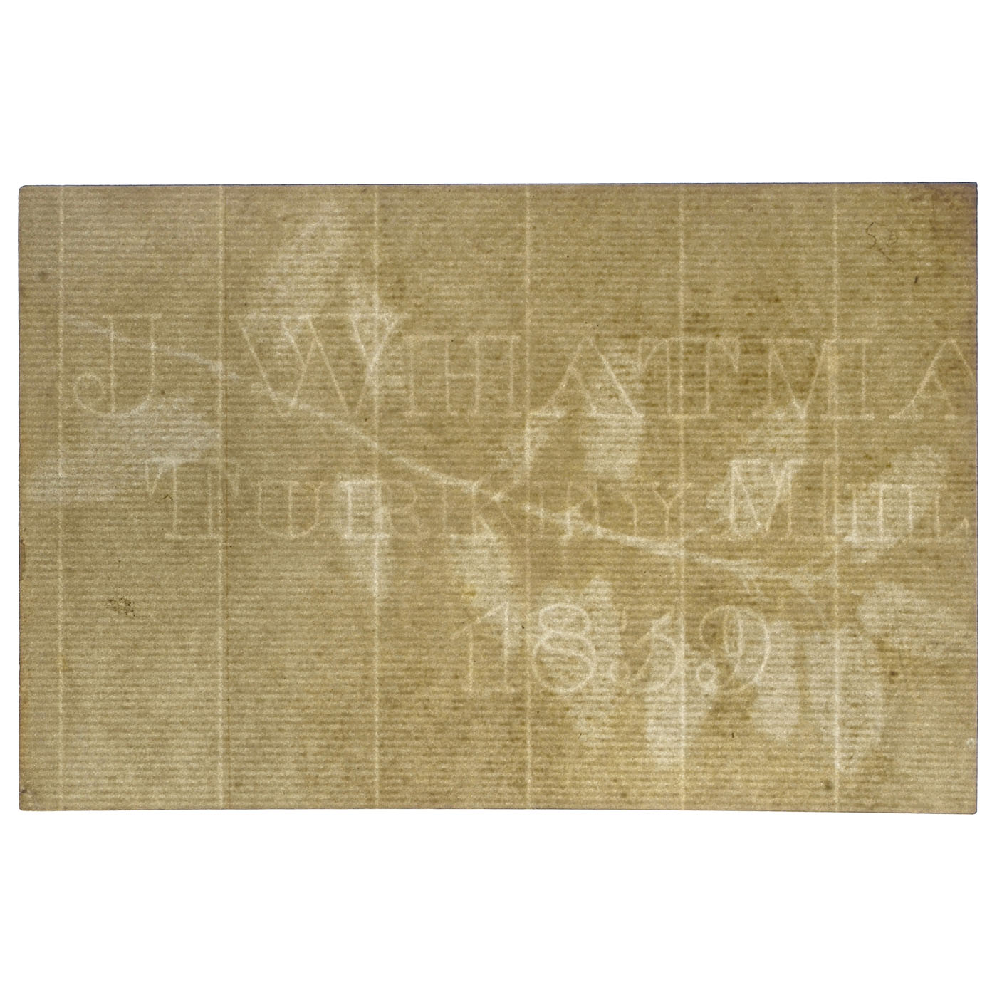 Forerunner of the Calotype process by Talbot of London. Paper size 10.5 x 16 cm. Paper watermarked: "J. Whautm. Turkey Mill 1839." Complete watermark: James Whautman Turkey Mill 1839. James Whautman was a writing paper manufacturer. Talbot used this writing paper, among other things, for his photographic experiments. This paper was used as a support, among other things, to make it light-sensitive with silver salt, which was then fixed using various methods after a very long exposure time. The paper was also waxed, among other things, to achieve greater contrast. The image shows a branch with leaves. A very well-preserved example and an absolute rarity from the early days of photography. A must-have in any sophisticated collection. Museum quality! ÿ In addition: Book by Geoffrey Batchen, "Inventing Photography (William Henry Fox Talbot)".