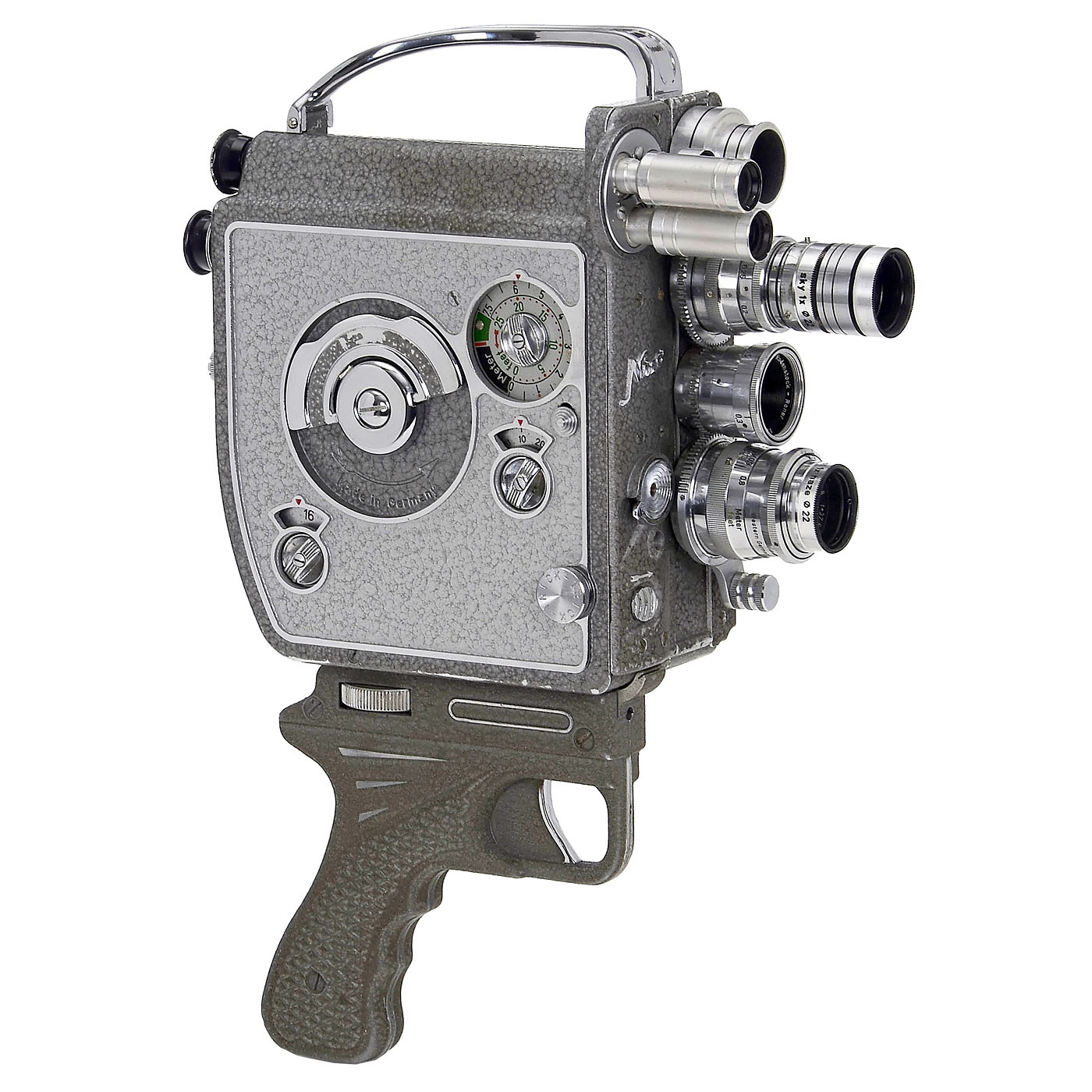 All spring mechanisms are functional! 1) Eastman, Rochester. Cine Kodak Special II, c. 1960. 16mm film camera for 30m daylight spools. Two interchangeable lenses: Ektar 1.4/25 mm and 1.6/40 mm. Optical viewfinder. Spring-driven, 8