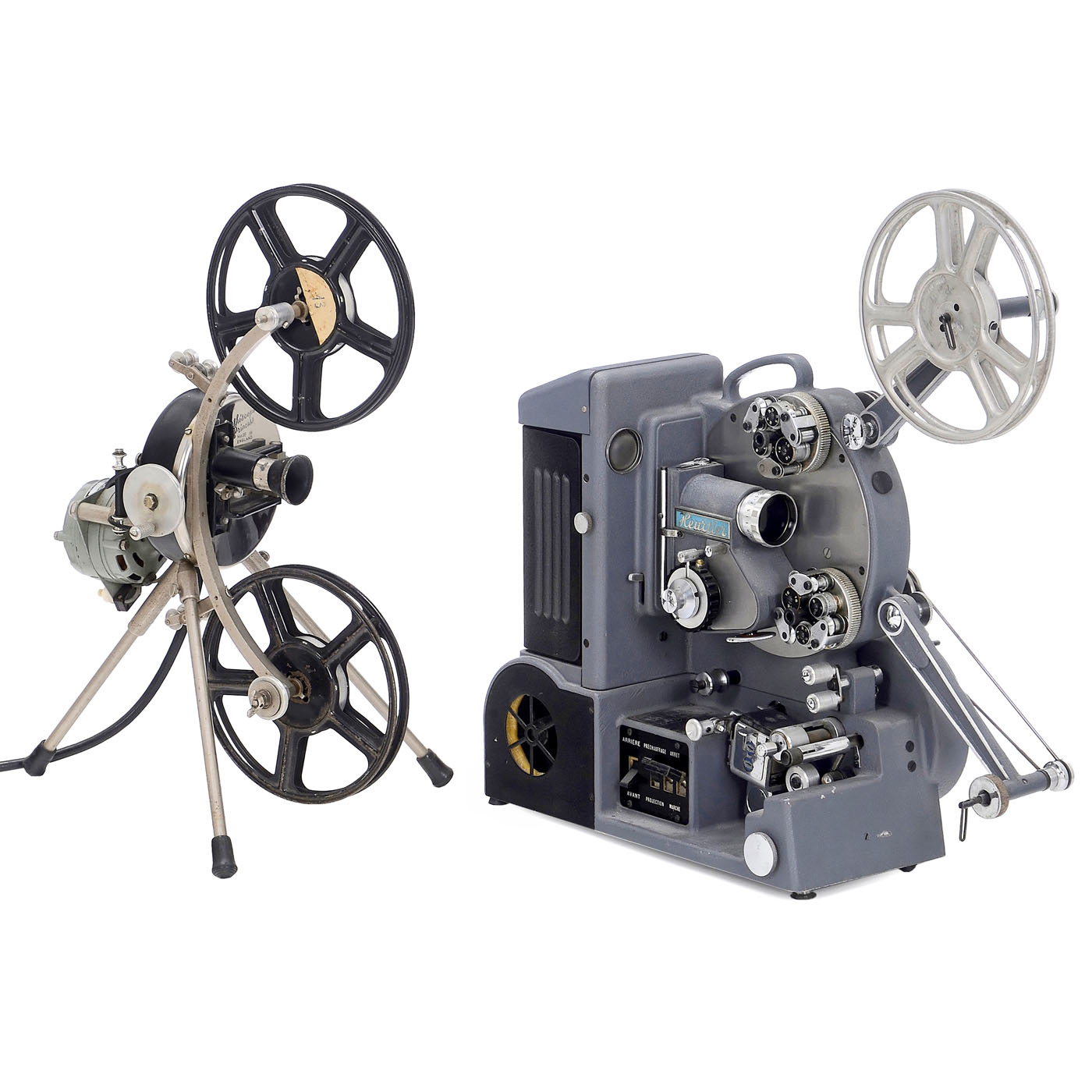 Heurtier, Paris. 1) Sound-film projector for 9.5 mm wide films with magnetic edge track on 120m film reels. Lens: 1.5/50 mm.