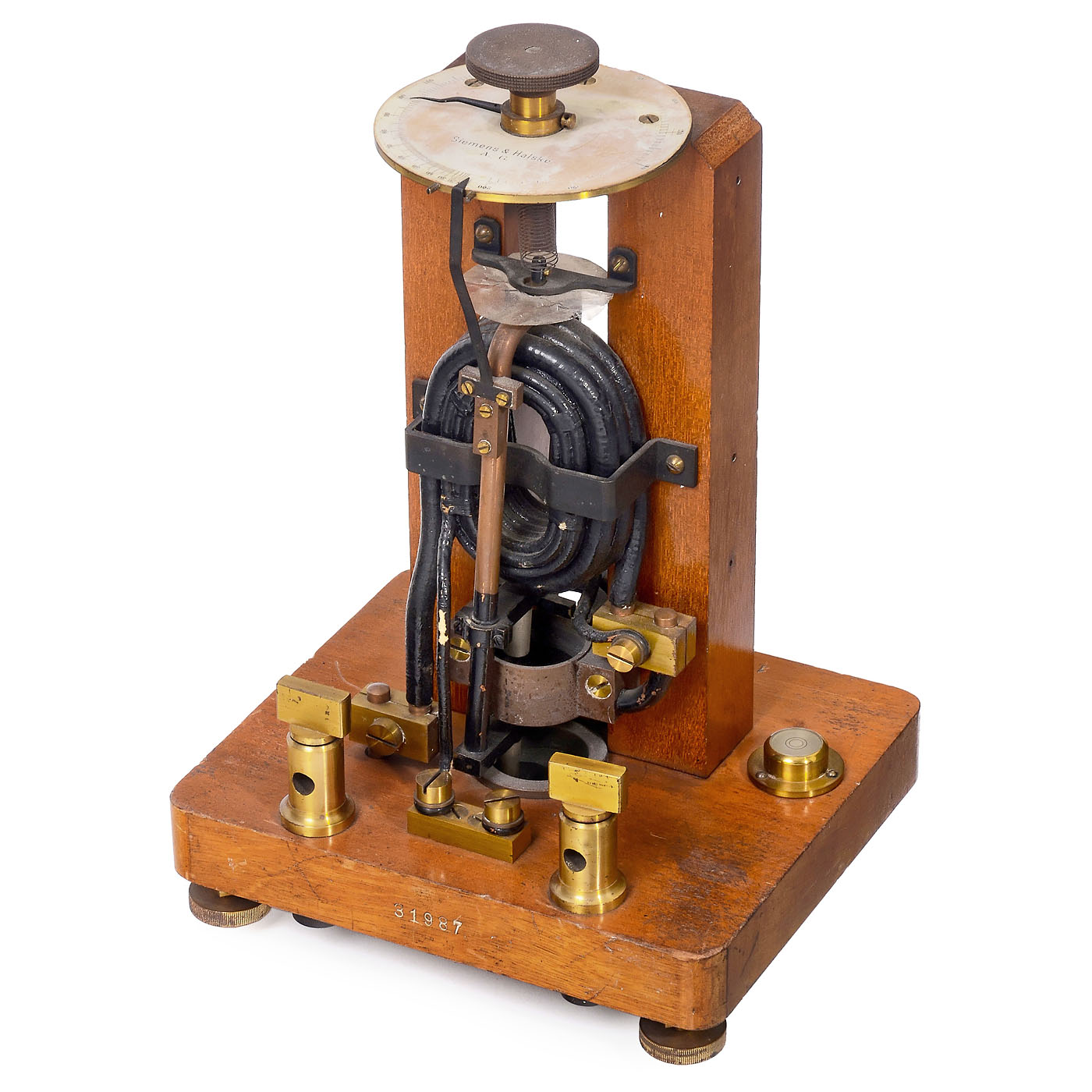 1) Needle galvanometer, J. Eiss, Vienna, c. 1880, with astatine needle according to Nobili, brass, glass cylinder, upper glass plate with cracks, total height 14 ? in. ÿ 2) Electro dynamometer, Siemens & Halske, c. 1890, torsion galvanometer with one fixed and one movable coil, for high-current measurements, height 12 ? in. ÿ And: 3) Needle galvanometer, c. 1870, W. Ladd, London, with glass dome, height 14 ? in.