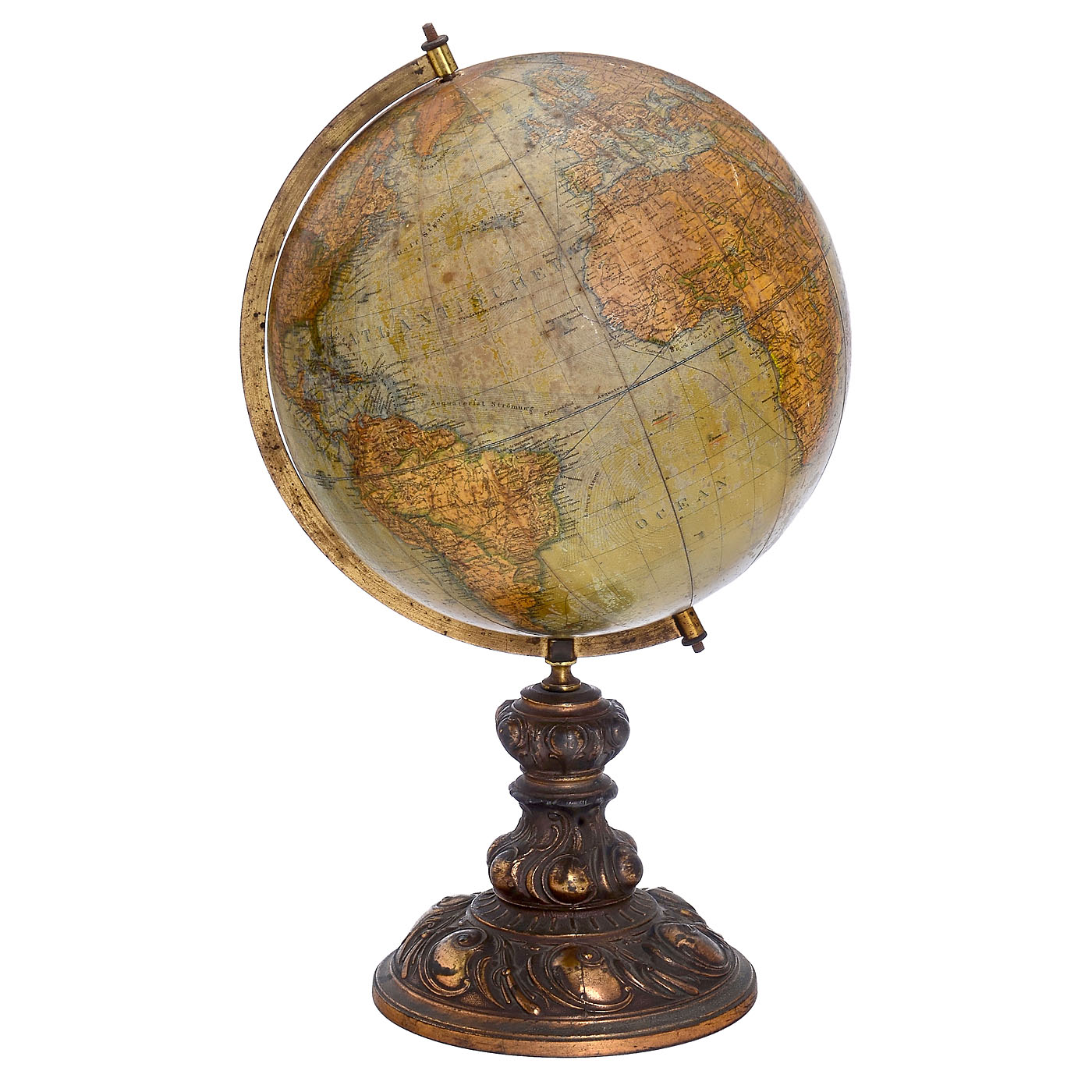 Labeled: "Geogr. Lith. Institut Berlin Verlag von Ernst Schotte & Co.", cardboard globe with 12 lithographed gores, 10 in., on a brass-plated cast-iron stand, total height 15 ? in. ÿ A very early version.