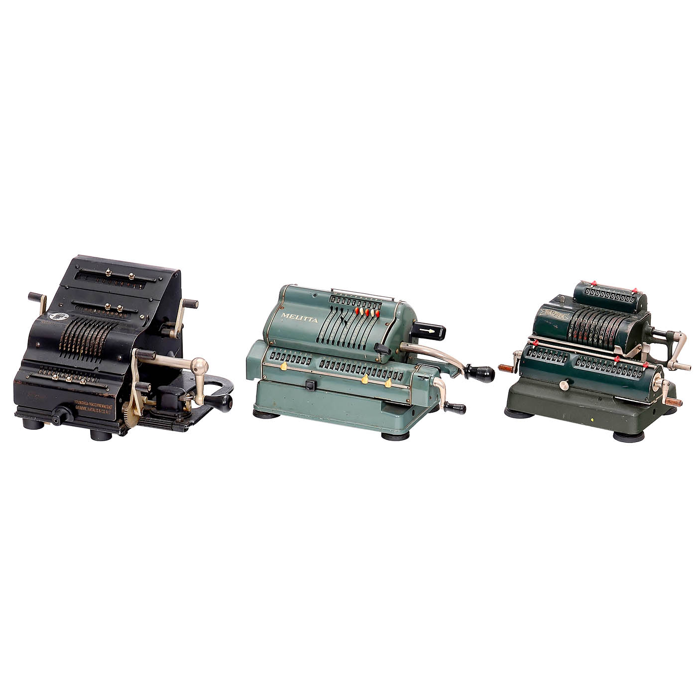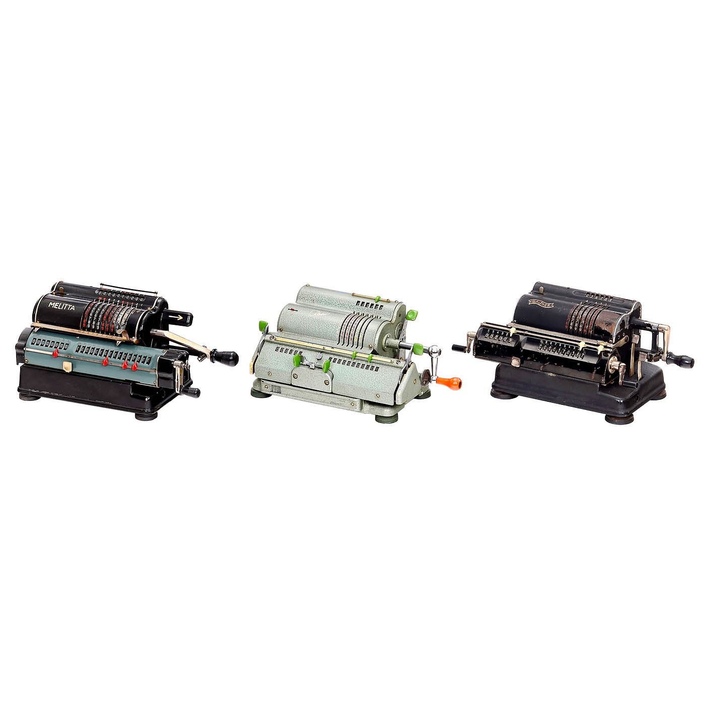 1) Four-species sprocket wheel machines: "Walther WSR 160", "Brunsviga 13 RK", "Melitta VI/16", "Brunsviga 13ZK", "Walther RMKZ", "Original-Odhner 7", "Schubert DRV", "Original-Odhner 227", "Hamann Manus R", "Trinks-Brunsviga", "Hamann Manus", "Walther RKZ 10", "Melitta V/10", "Schubert CW", "Brunsviga 10" and "Thales CER".