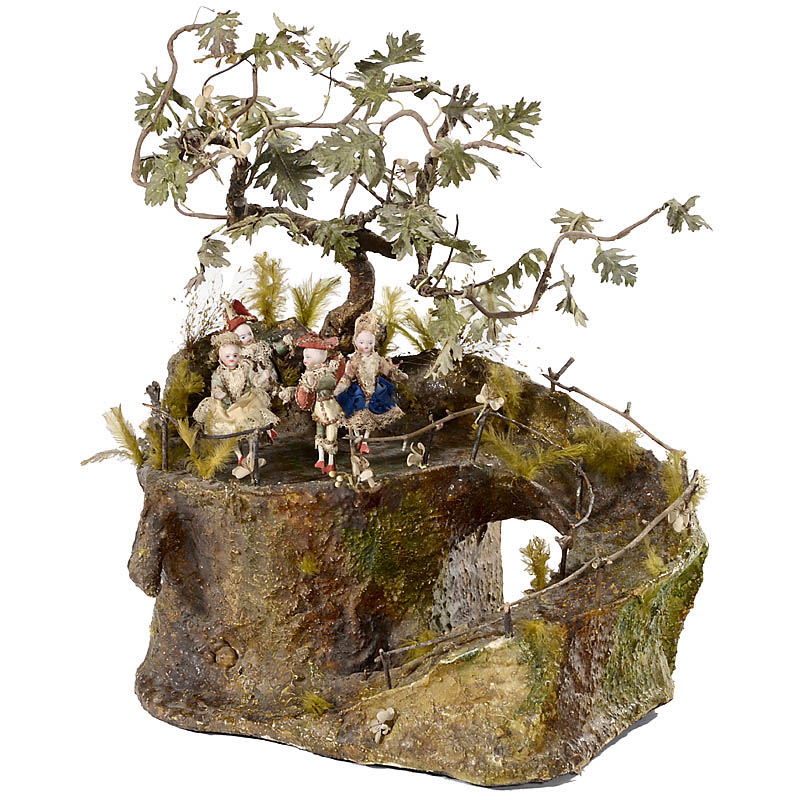 With four articulated bisque dancers (two ladies, a