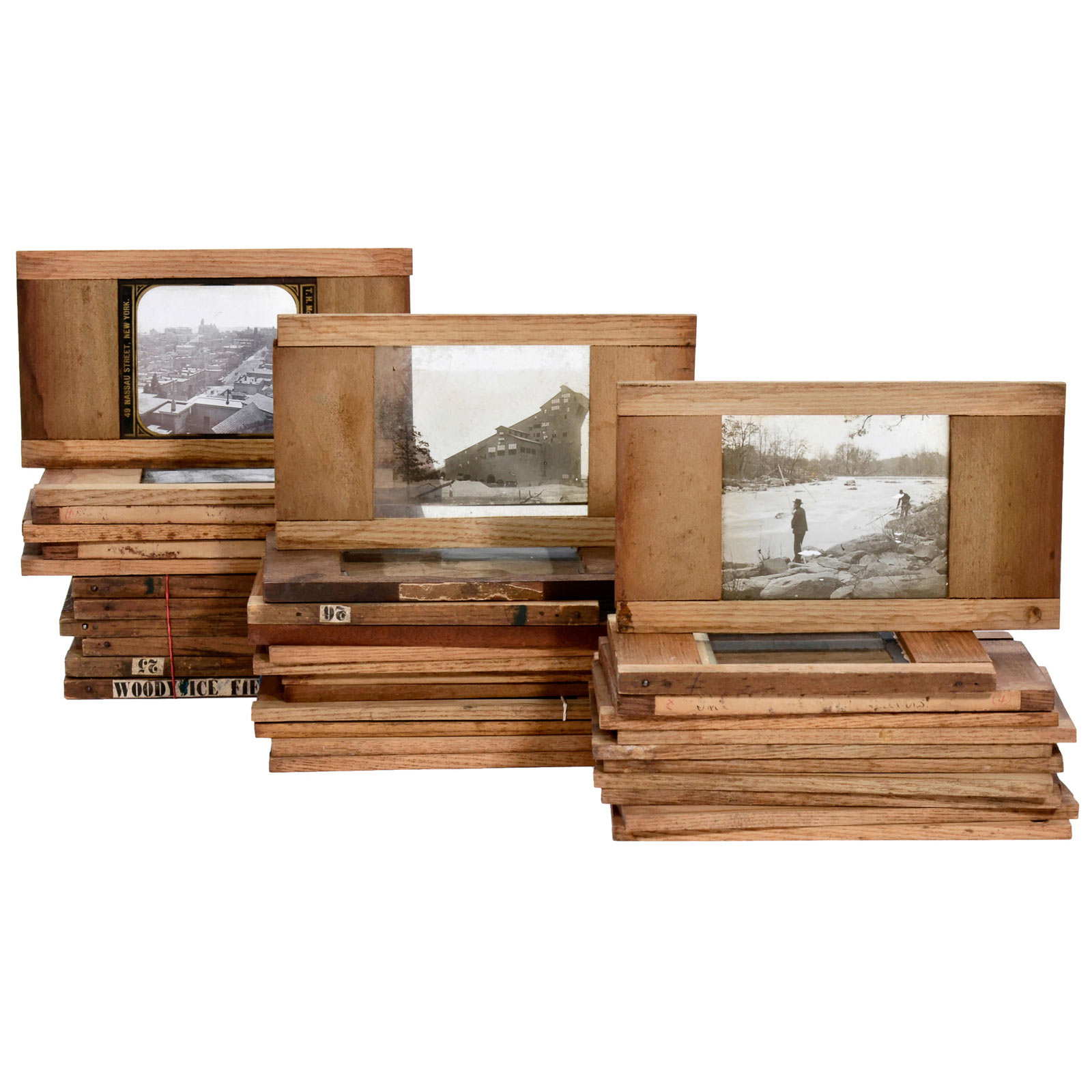 Group of 34 Early (Mainly) American Photographic Magic Lantern S