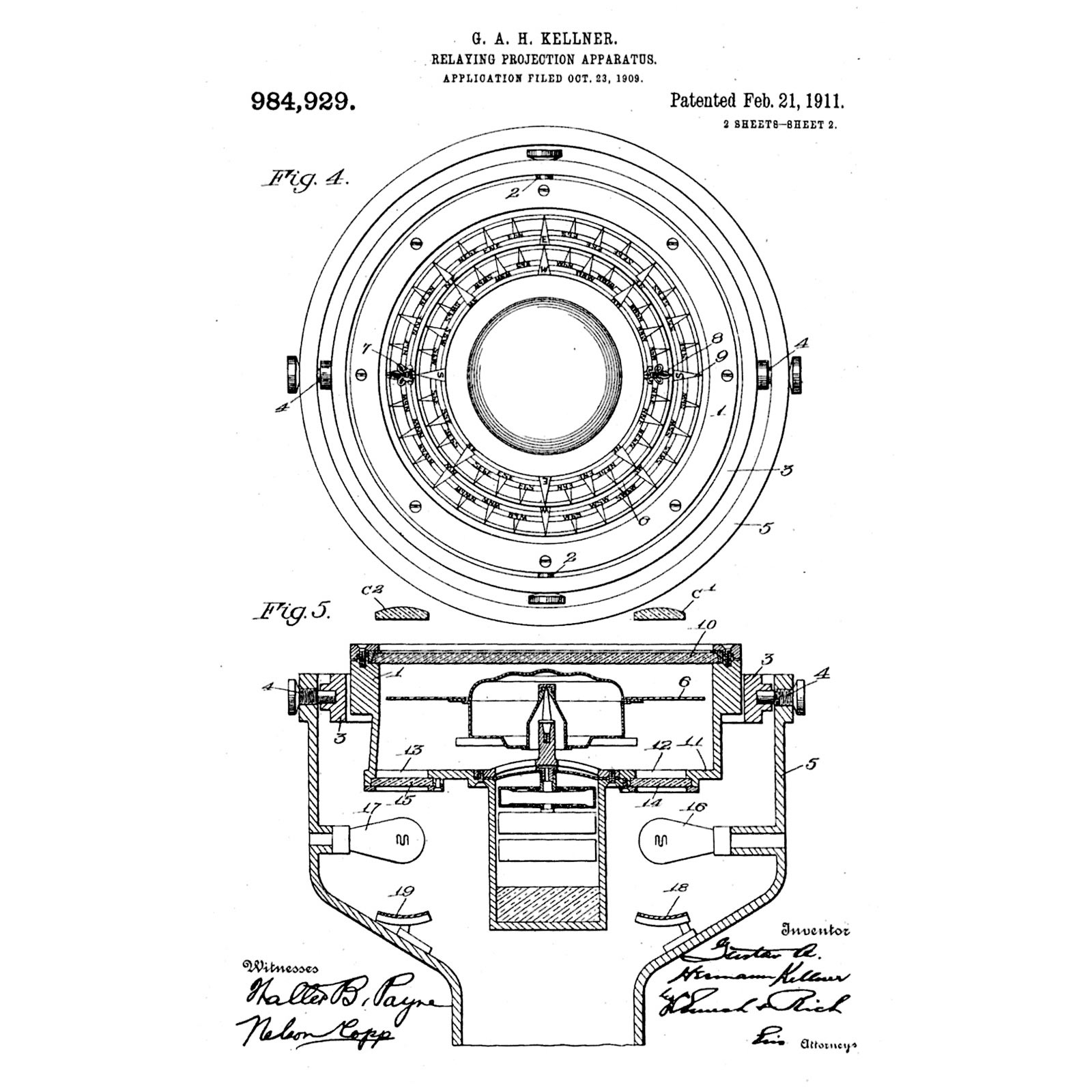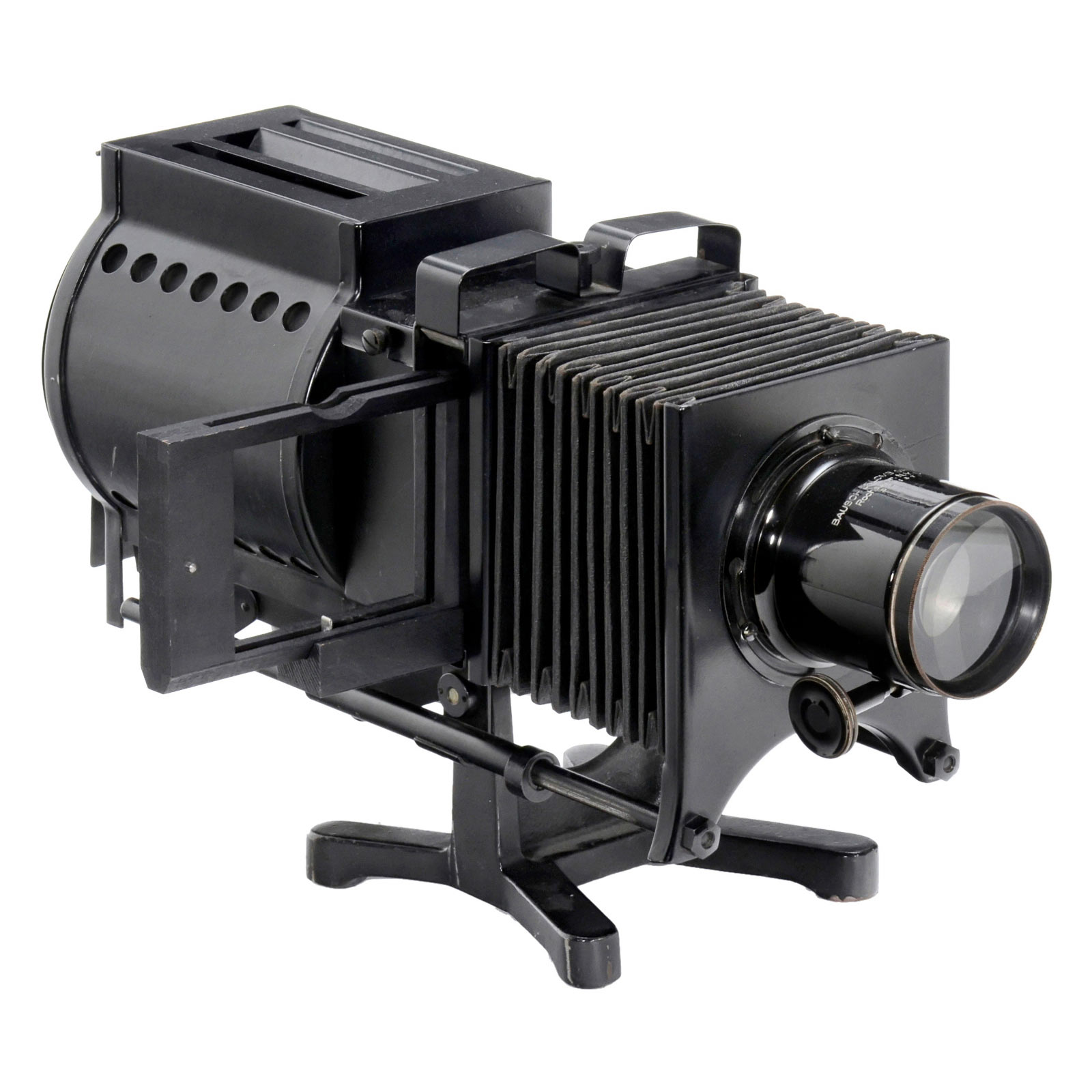 1) Bausch & Lomb Optical, USA. For slides of 8 x 8 cm, with 2 original bulbs, 2 lenses of 15 in. by Bausch & Lomb. With patent pending (copy), 110 volt. Early dissolve projector. (3+/–) – And: 2) Magic lantern by Bausch & Lomb, c. 1915, for lantern slides of 8 x 10,5 cm, 110 volt, lens by Bausch & Lomb. (3/–) – Electric functions not tested.