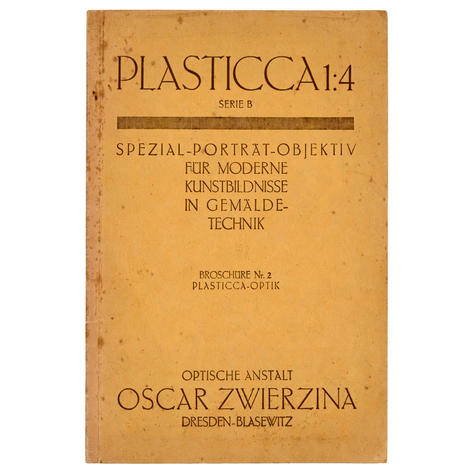 "Broschüre Nr. 2 Plasticca-Optik", Optische Anstalt Oscar Zwierzina Dresden-Blasewitz. "Spezial-Portrait-Objektiv für moderne Kunstbildnisse in Gemäldetechnik", 16 pages with 8 plates, size 6 x 8 ¼ in.