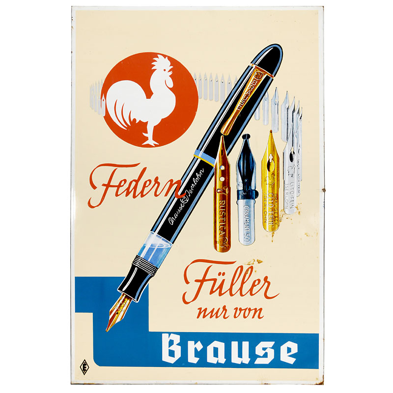 大型瓷质广告牌“Brause钢笔” 1950年前后