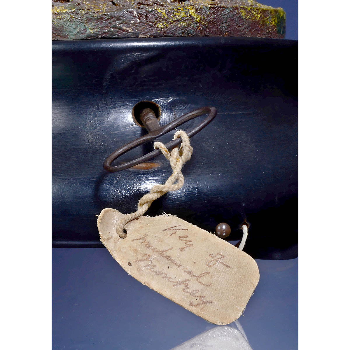 Depicting a mathematics master at the lectern and his pupil standing on a stool to reach the board, both figures with papier-mâché heads, carved wood hands, articulated mouths and original satin costumes, the master in a frock coat and cap, the pupil in silk breeches and paper-trimmed jacket, on ebonized base containing two-air pull-string cylinder movement, No. 15097, with tune-sheet ("Les Roses Valse" and "La Fille de Mme. Angot, Conspirateur") and stamp of "J. Phalibois", the going-barrel motor, No. 503, with nine boxwood cams, indistinct horologist's stamp and oval stamp: "J. Phalibois à Paris", ht. 16 ½ in. (42 cm), schoolmaster's mouth inactive, leather on pupil's upper lip split. – The master turns his head, blinks and leans forwards as he points at the board, then lifts and extends his book. The pupil, meanwhile, looks from board to master, chatters and writes away, hoping that his teacher will not notice the cartoon of a bearded and spectacled professor he has drawn in the lower left corner. – The automaton was probably displayed at the third Exposition Universelle which attracted more than 13 million visitors to the Palais du Champs de Mars in Paris from 1 May to 31 October 1878. The base has two ink stamps of "Exposition Universelle 1878, J. Phalibois, Paris, Pièces Mécanique, Fantasies à Musique". Phalibois exhibited in the toy section (Classe 42), described in the "Guide Conty de l'Exposition Universelle de 1878" as containing "toys of every description, each more ingenious than the last". A rare and amusing automaton in good, original working condition.