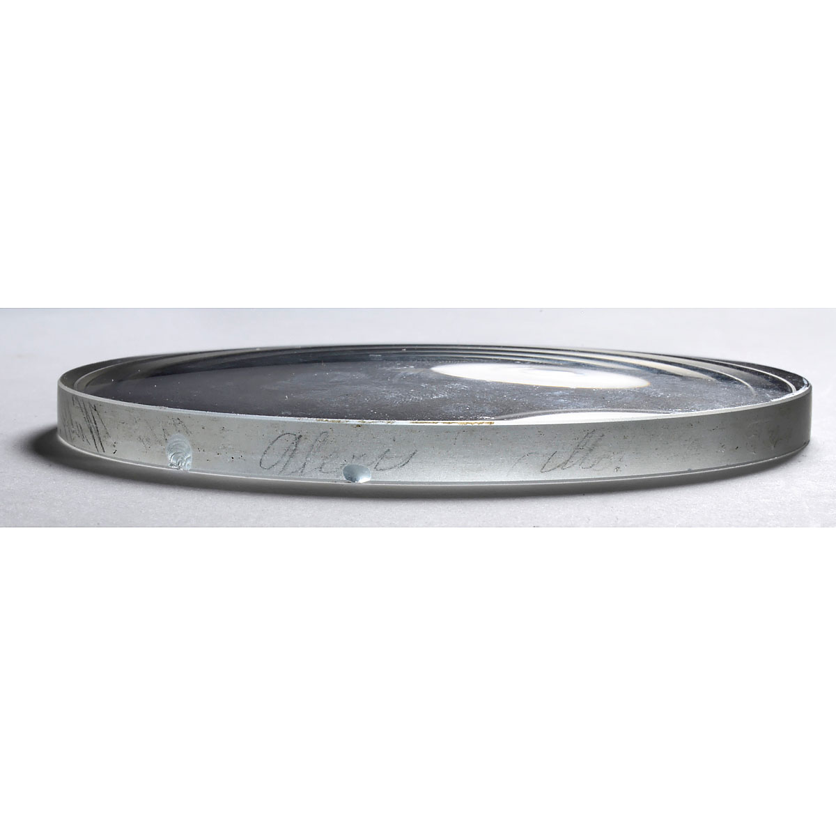 French-style landscape lens, focal length approx. 110 cm, stamped "J. Duboscq, Paris" on the lens connecting ring, light dents in the conical tube. On the edge of one element is the handwritten credit "Alexis Millet".