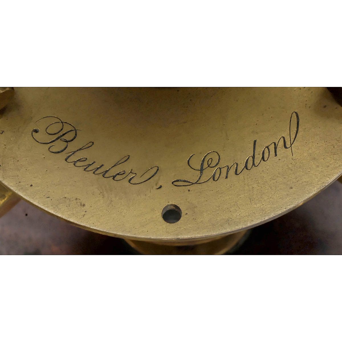 Signed on the stage "Bleuler, London", original lacquered brass, draw-tube focusing, concave reflector mirror, on mahogany base with drawer, with 5 objectives, live box, Lieberkuhn, bone specimen slide and others, overall height 15 ¾ in., in pyramid-shaped mahogany case with paper label "Bleuler Instrument Maker, 27 Ludgate Street, London".
