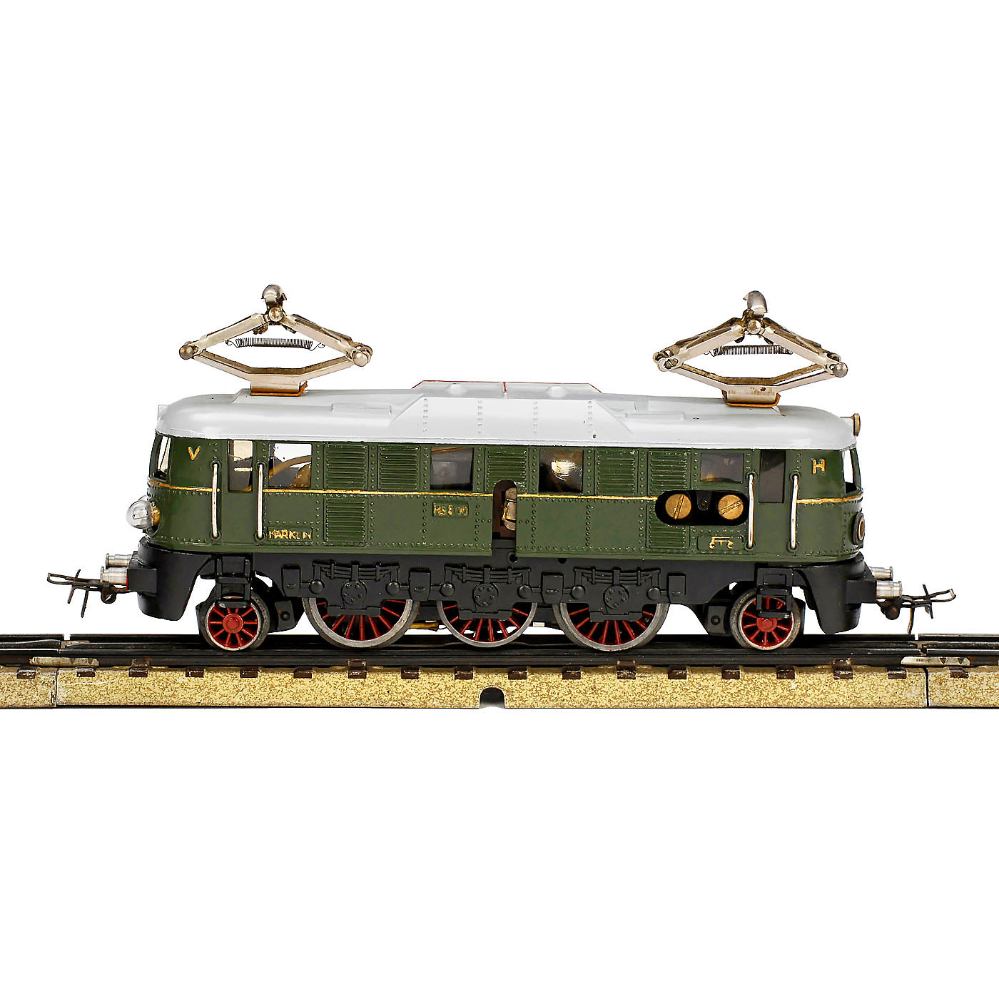 Gauge 00/H0, version 3, cast metal, 2 headlights, type-2.2 pantographs, "Märklin HS 800" lettering on both sides, length 6 ½ in, professionally restored.