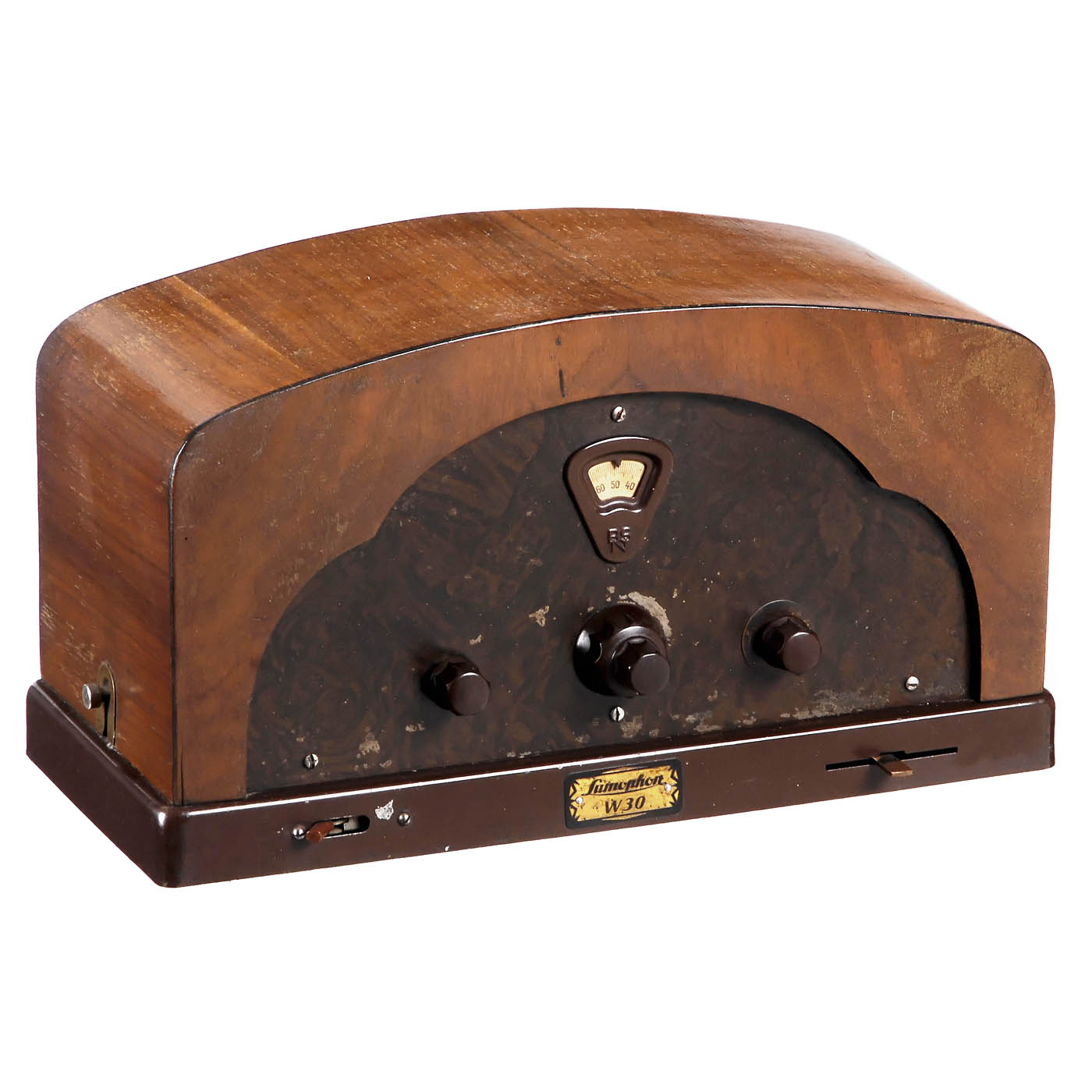 1) Belknap 625, Belmont Radio Corp. (B.R.C.), Chicago, c. 1933, six tubes, medium wave only, 105-115 volts all current, dynamic speaker, Art-Deco-style wood case, complete with tubes and back panel. - 2) Octode Super 520A, Philips France, c. 1935, six tubes, long wave and medium wave, 103-253 volts AC, dynamic loudspeaker, wood case, complete with tubes and back panel. - 3) Model 944A-19, Philips Prague, c. 1935, three tubes, long wave and medium wave, mains operation, dynamic loudspeaker, wood case, complete with tubes and back panel. - And: 4) Lumophon W30, Bruckner & Stark, Nuremberg, c. 1930, four tubes, long wave and medium wave, 110-220 volts AC, dynamic loudspeaker, wood case, complete with tubes and back panel.