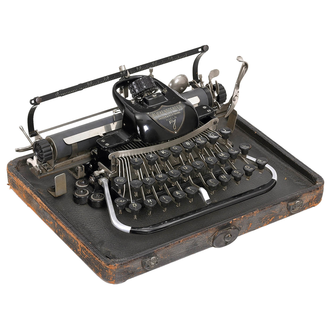 1) "National Typewriter No. 3", c. 1918, serial no. 4845, QWERTY keyboard, working. (3/3) – 2) "Blickensderfer No. 7", 1898 onwards, serial no. 122012, DHIATENSOR keyboard, working, with case. – Literature: Martin, 1949, p. 136. (2–3/2–3) – 3) "Standard Folding Typewriter Model 1", 1908 onwards, no. 2703, aluminum frame and carriage, shift-keys on either side of the keyboard, folding carriage, missing 3 keytops, very dirty, in need of cleaning. (4/5) – And: 4) "Sun Standard No. 2", 1901 onwards, serial no. 16209, three-row frontstroke typewriter with unusual inking mechanism, mechanism sticks, right-hand side of tin cover damaged. (4-/4-)