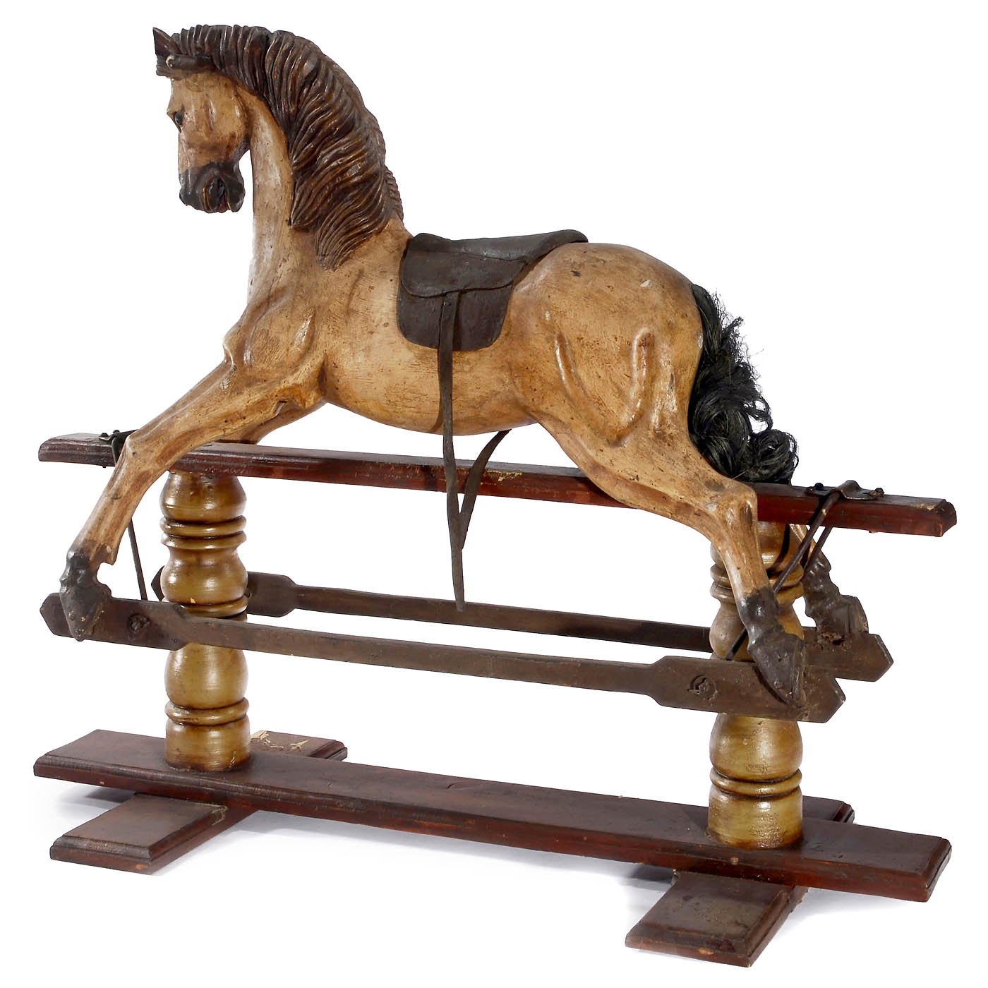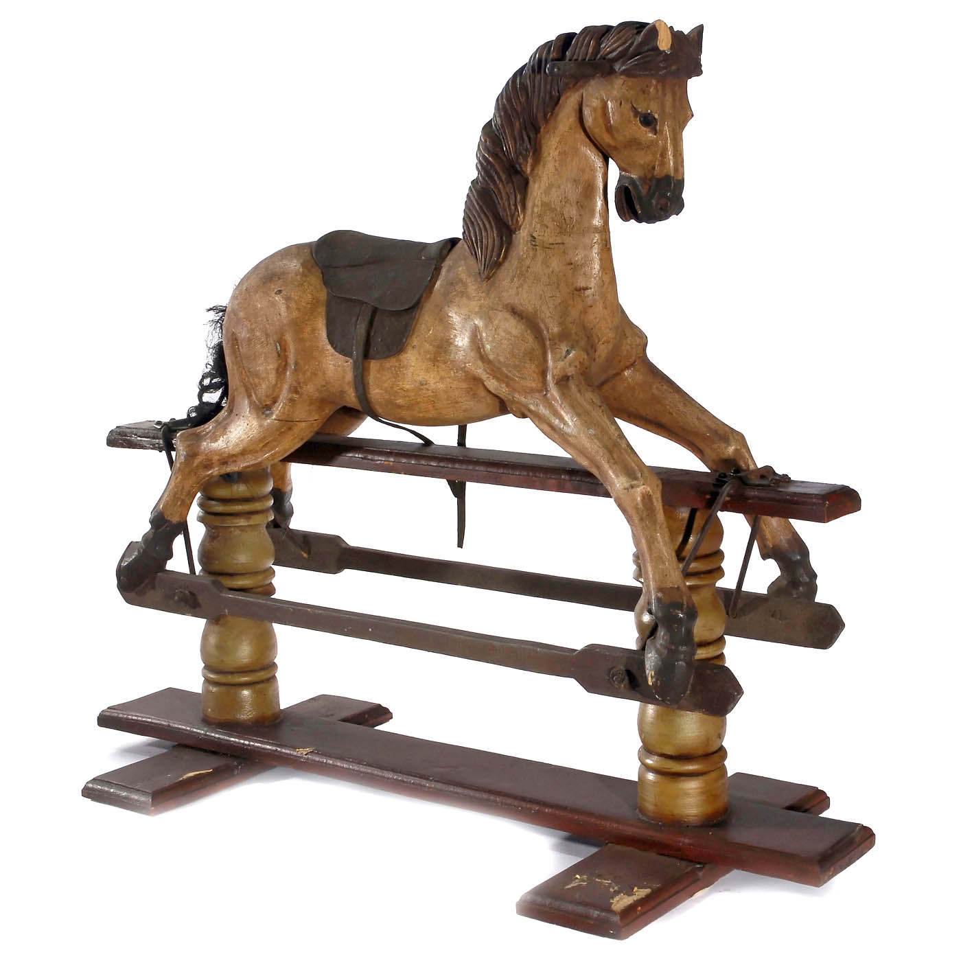 Carved and hand-painted wood, horsehair tail, ht. 41 in. x lg. 48 in., working.