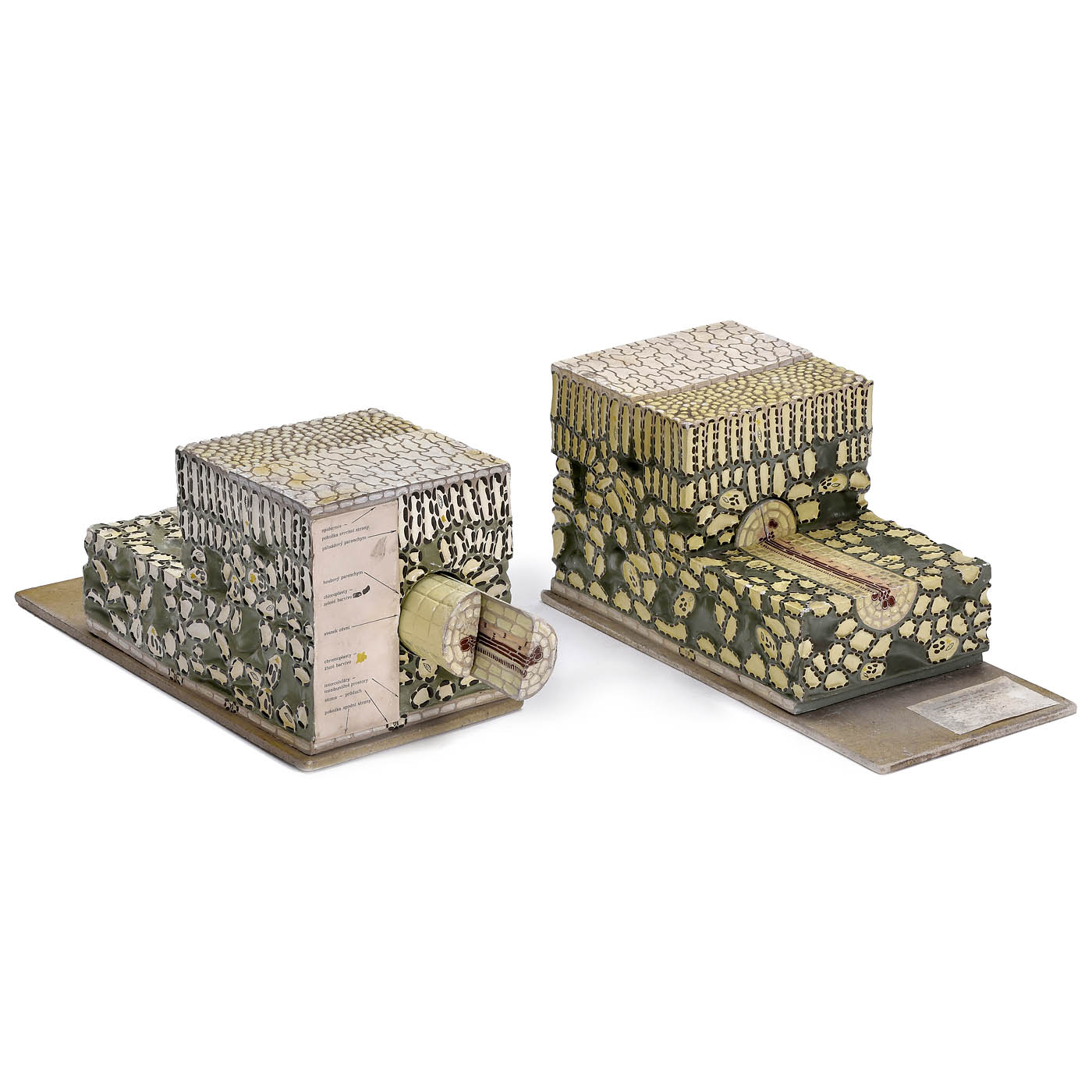Czechoslovakia, segmented plaster models showing the microscopic fine structures in length and cross sections, magnification approx. 1500x, dimensions 12 ¼ x 7 x 7 in.