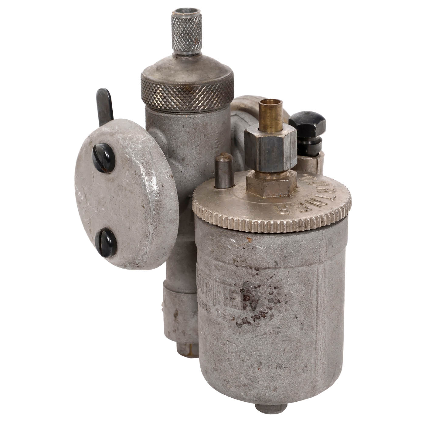 Grey cast iron, two-stroke, two-speed gearbox, side pinion, unrestored condition. – In addition: Gurtner R-17-D carburetor.