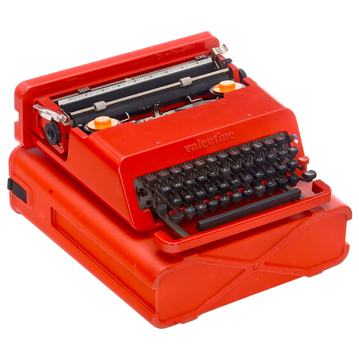 Olivetti, Italy. Legendary plastic typewriters designed by Ettore Sottsass and Perry A. King, red, blue and white, each with original case, in near-mint working condition. – Emblematic examples of classic industrial design!