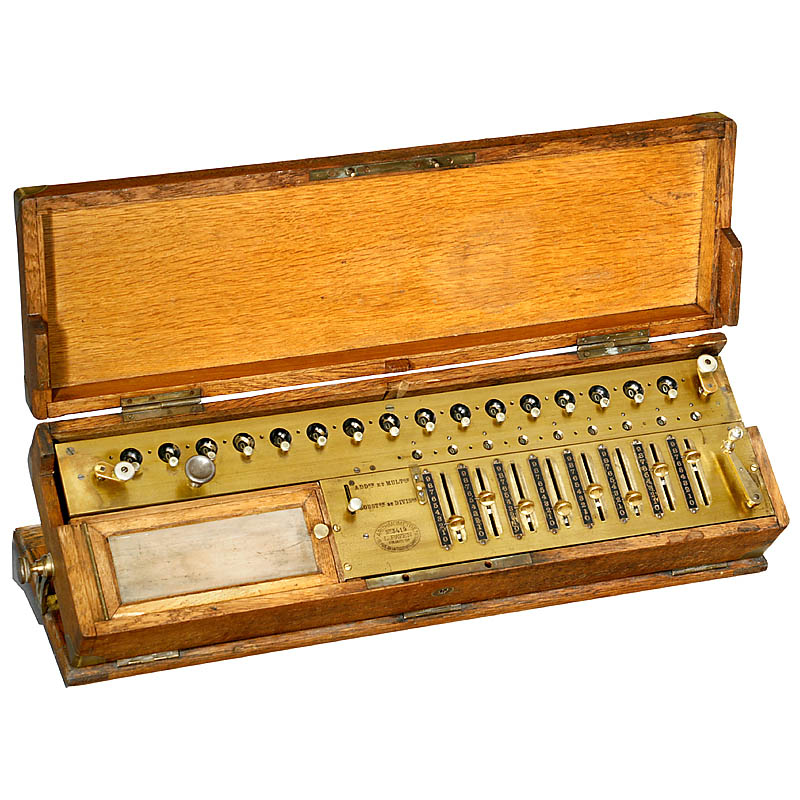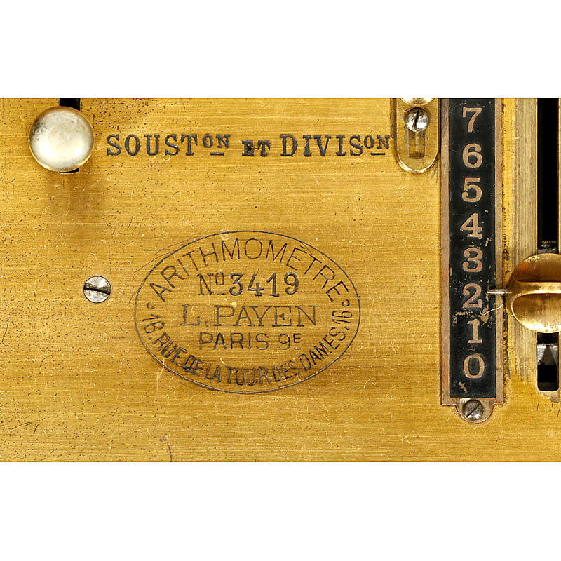 Large model of world's first calculating machine. Produced in series by Thomas' successor "L. Payen, Paris". Serial no. 3419.