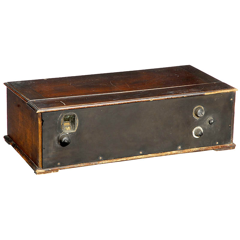 Manufactured probably by: "Thoms/Houston", 6-valve receiver with 3 tuning circuits, with 2 interesting valves (similar to Marconi S625), battery-powered. Needs restoration.