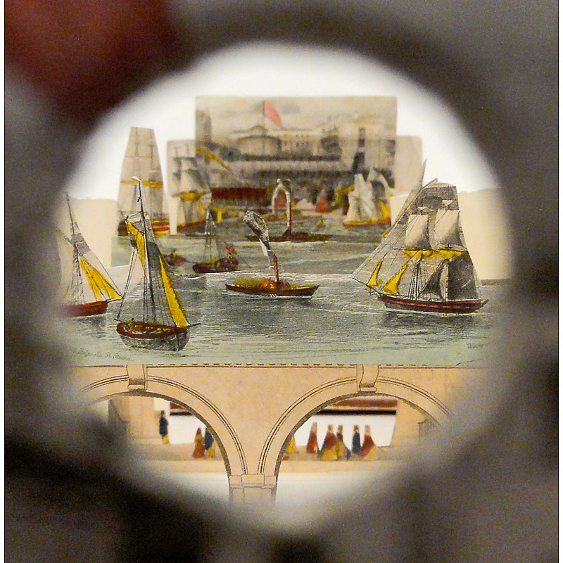 未标记, 英国. 7 x 6 1/4 in., 拉开来长约 24 in., 早期彩色石印图片, 四维视觉, 立体西洋景图片可供隧道管以及单管观看. – 十分漂亮的藏品!