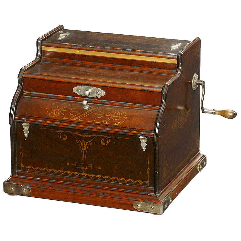 20-note paper roll organ, made in the USA by the "Mechanical Orguinette Co., New York". With 9 rolls. Excellent playing condition!