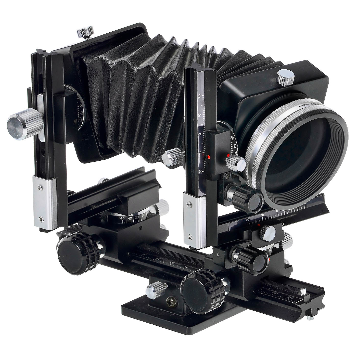 All lenses with iris diaphragm, all good under point light. 1) Japan. Optical-bench camera with all adjustments, 17 cm long, for T2 mount, no signs of use, M42 front, Nikon adapter on the back. Ideal for digital cameras! (2-/2) – 2) Steinheil 3.5/35 mm, no. 2396588, lens head for macro in M42, with integrated reversing ring as a lens hood. Unknown macro lens! (3/3) – 3) Schacht, Ulm, Germany. M-Travenar 2,8/50 mm R, Macro tube with screwable lens heads, for M42, with velvet box and caps. (3/3) – 4–7) Macro lens heads in M42 for the Schacht system: Steinheil Macro-Cassarit 3.5/50 mm; Meyer, G?rlitz Helioplan 4.5/55 mm and 4.5/75 mm, well suited for UV photography as the lens parts are without cementing, and Zeiss Jena Tessar 2.8/50 mm. (3/3) – And: 8) Schneider Xenar 4.5/135 mm lens head in M42. (2-/3)