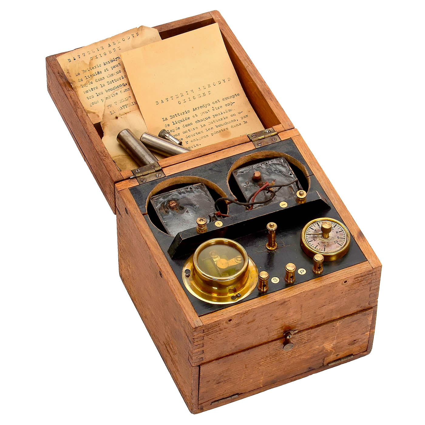 Used for electrotherapy. 1) Large English medical electroshock device, mid-19th century, marked "Slater & Oakes, Derby", with induction coil and 2 electrodes, coil length 6 in., on mahogany base, in case. – 2) Unmarked, with control unit and 2 dry batteries. – And: 3) "Magneto Electric Machine", England, vertical walnut case, with horseshoe magnet and two coils, hand-cranked, with two electrical terminals, instructions in lid.