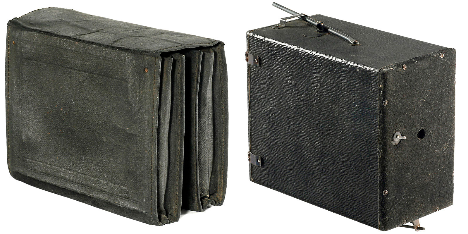 杆式触发快门,位于相机盒上方;底片规格70 x 100 mm ,内有4层片盒。