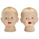 一对婴儿玩偶头部, 英格兰斯坦福郡Doll Pottery公司制造, 约1920年