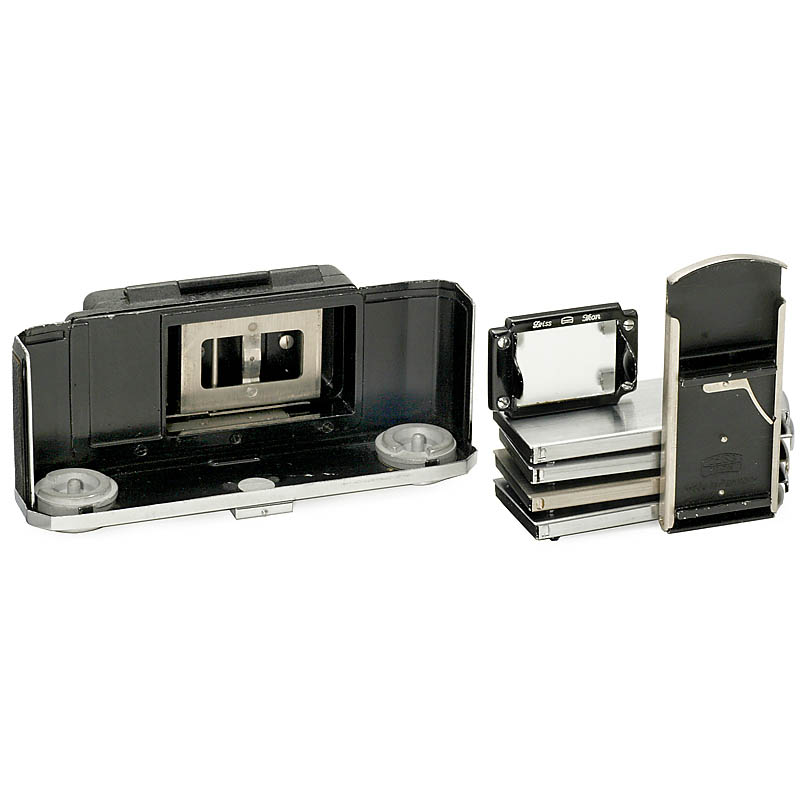 Zeiss Ikon, Dresden. Set with 5 film holders, with original boxes. – And: Contax single focusing screen.