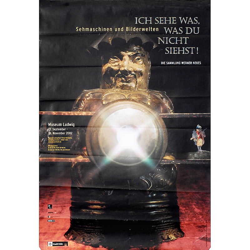 Large-size poster about the exhibition of peep shows, optical toys, Laterna Magicas and more from the collection of Werner Nekes, size 32 1/3 x 68 in., with minor damages.