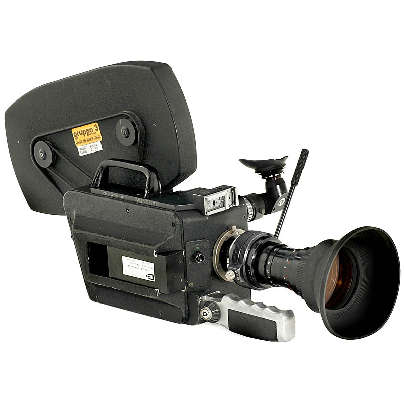 Cinema-Product, USA. Low-noise camera, mirror reflex viewfinder, Angenieux-Zoom 1:2.2/12–120 mm lens with the rare Chrosziel zoom brake.