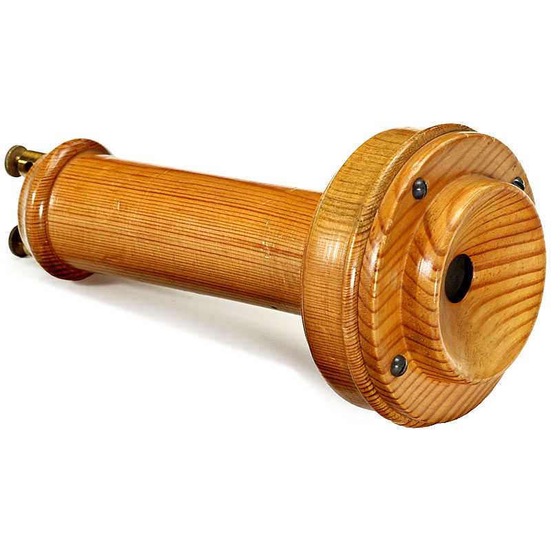 Butterstamp telephone, fire wood, suitable for speaking and hearing, with horseshoe magnet, height 6 in.