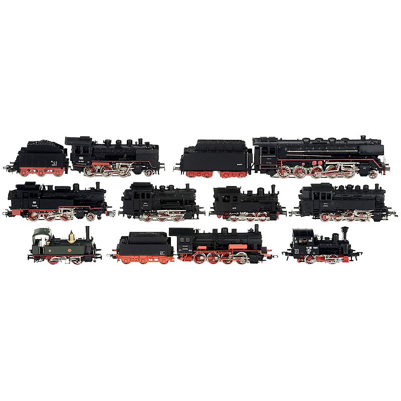 6辆"Märklin" 蒸汽机车和3辆其他机车(H0)