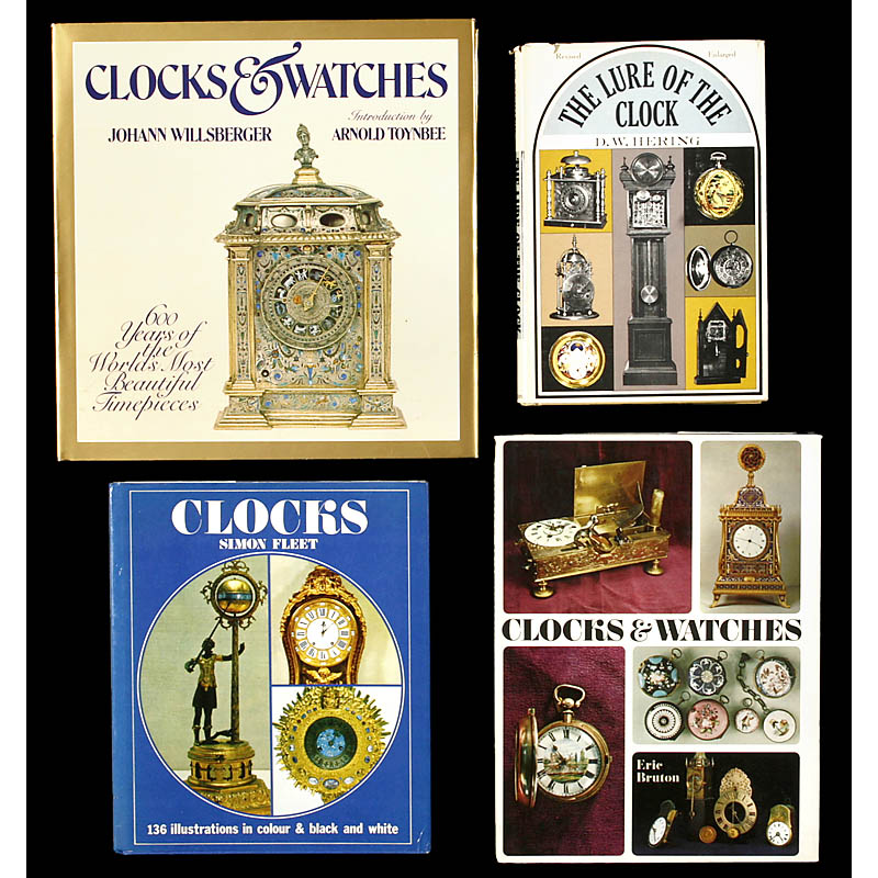 1) "The Lure of the Clock". 2) "Clocks & Watches". 3) "Clocks". 4) "Clocks & Watches, 600 Years of the World's most Beautiful Timepieces".