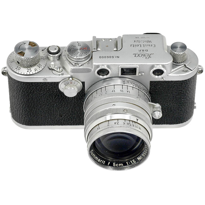 Leitz, Wetzlar. No. 606000, 黑色同步刻度. 附带 Summarit 1,5/5 cm镜头, no. 950437, 米刻度