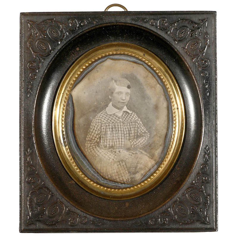 Truchelut, rue de Grammont 17, Paris. 档案号: 1849– 80, 1/6的底板, 椭圆形裁剪, 一个年轻人的肖像照, 胶木相框, 外形规格: 12 x 14 cm.