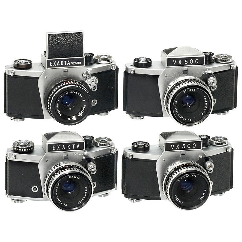1) Exakta VX1000,no. 1222156, version 1.1, 1967, Tessar 2,8/50 mm, no. 9545259, prism finder. (2–3/2-).