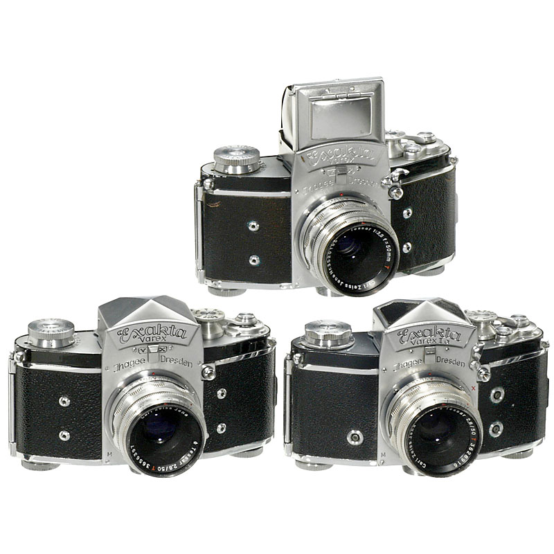 3) Varex IIa,no. VX IIa 847643. version 1, 1956, Tessar 2,8/50 mm T, no. 3628916, prism finder. (3+/3+)