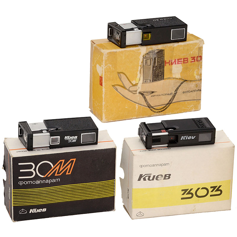 All 3 cameras complete with accessories, instructions and boxes. Attractive set!