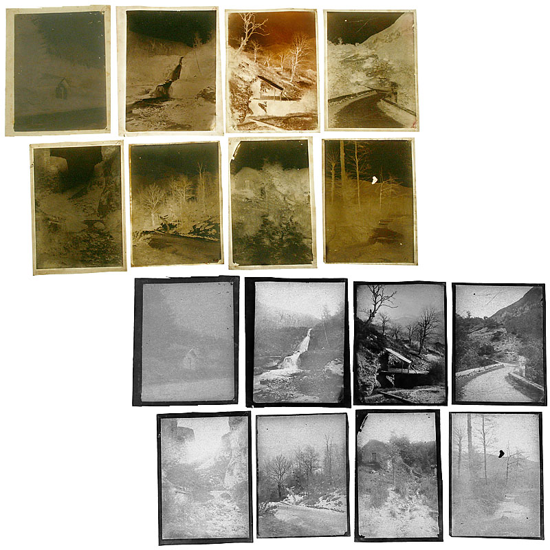 Paper negatives, sizes: 1 negative 6 ¼ x 9 in. (handcolored!) and 16 negatives 4 ¾ x 6 ¾ in., landscape and building photographs. – Very early negative process by the legendary natural scientist William Henry Fox Talbot (1800–1877).
