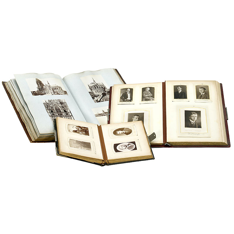 1)2 albums with date: 1882, 1876 and 1912, with cartes-de-visite and other sizes, not complete, various conditions.