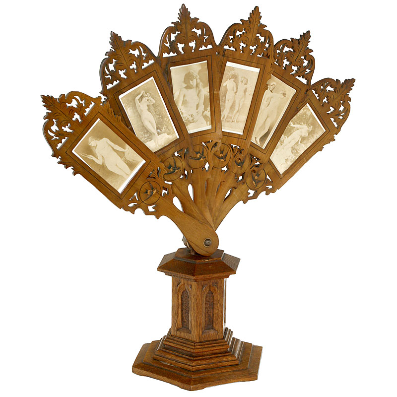 Nice photo range, oak tree, with 6 nude photographs (albumen), size 2 1/3x 3 ½ in., height: 19 5/8in. Decorative!