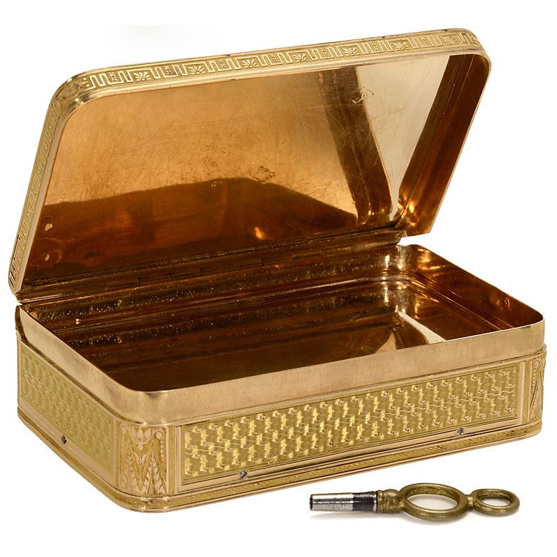 Fine 18-Carat Gold Musical Snuff Box by Jean-Georges Reymond, c.