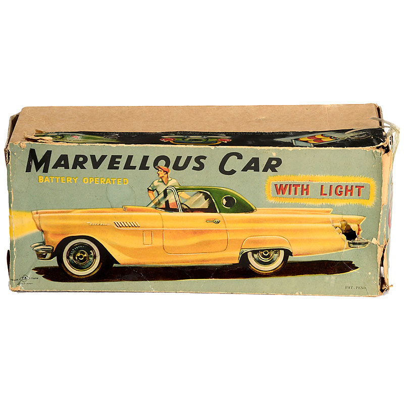 Marvellous Car, Japanese tin toy car, red/beige, battery-powered, working, length 11 ¾ in., original box (damaged).