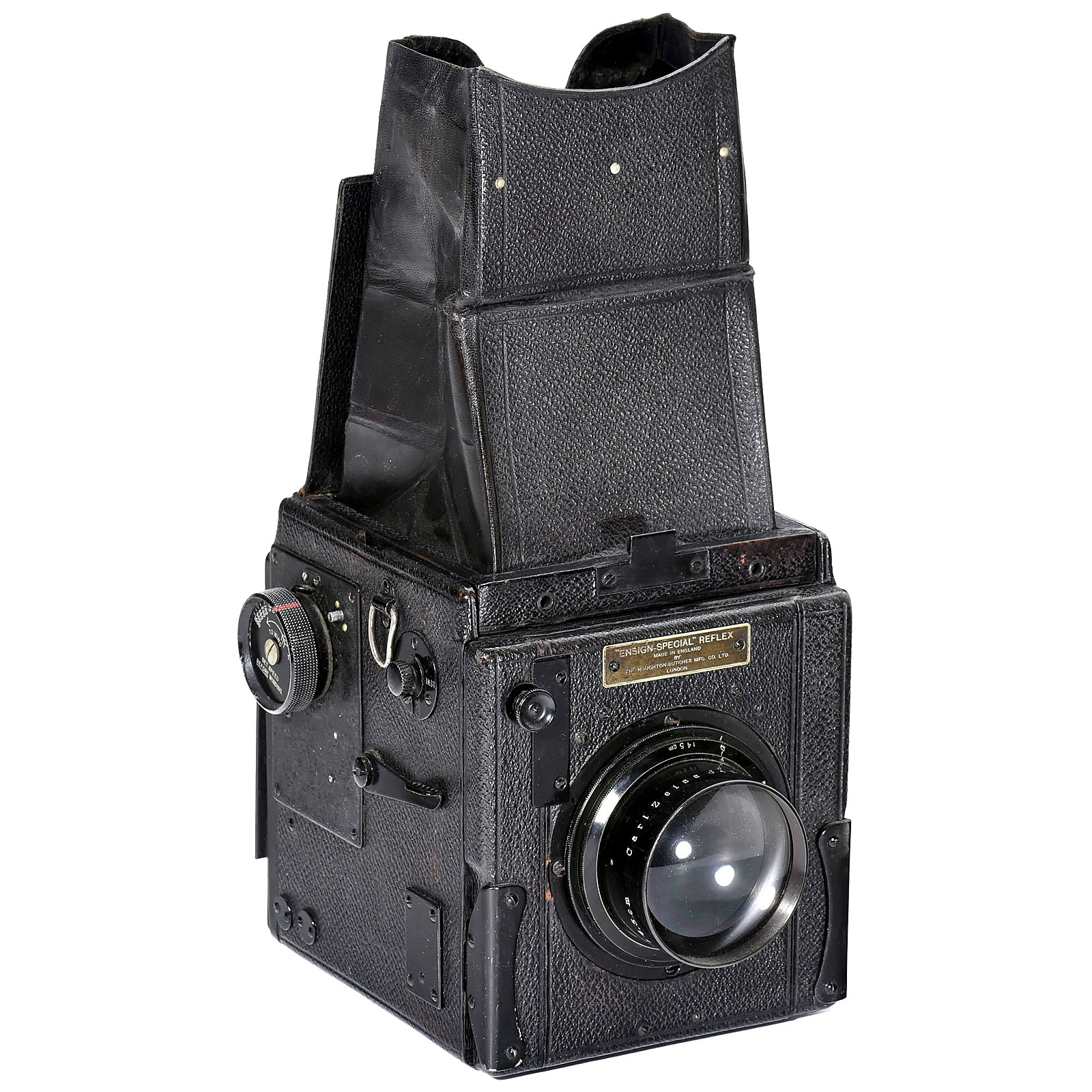 Houghton, London. Size 2 ¼ x 3 ¼ in., focal plane shutter 1/15–1/1000 (uneven). With Zeiss Tessar 2,7/14,5 cm, no. 649467. With rollfilm back.