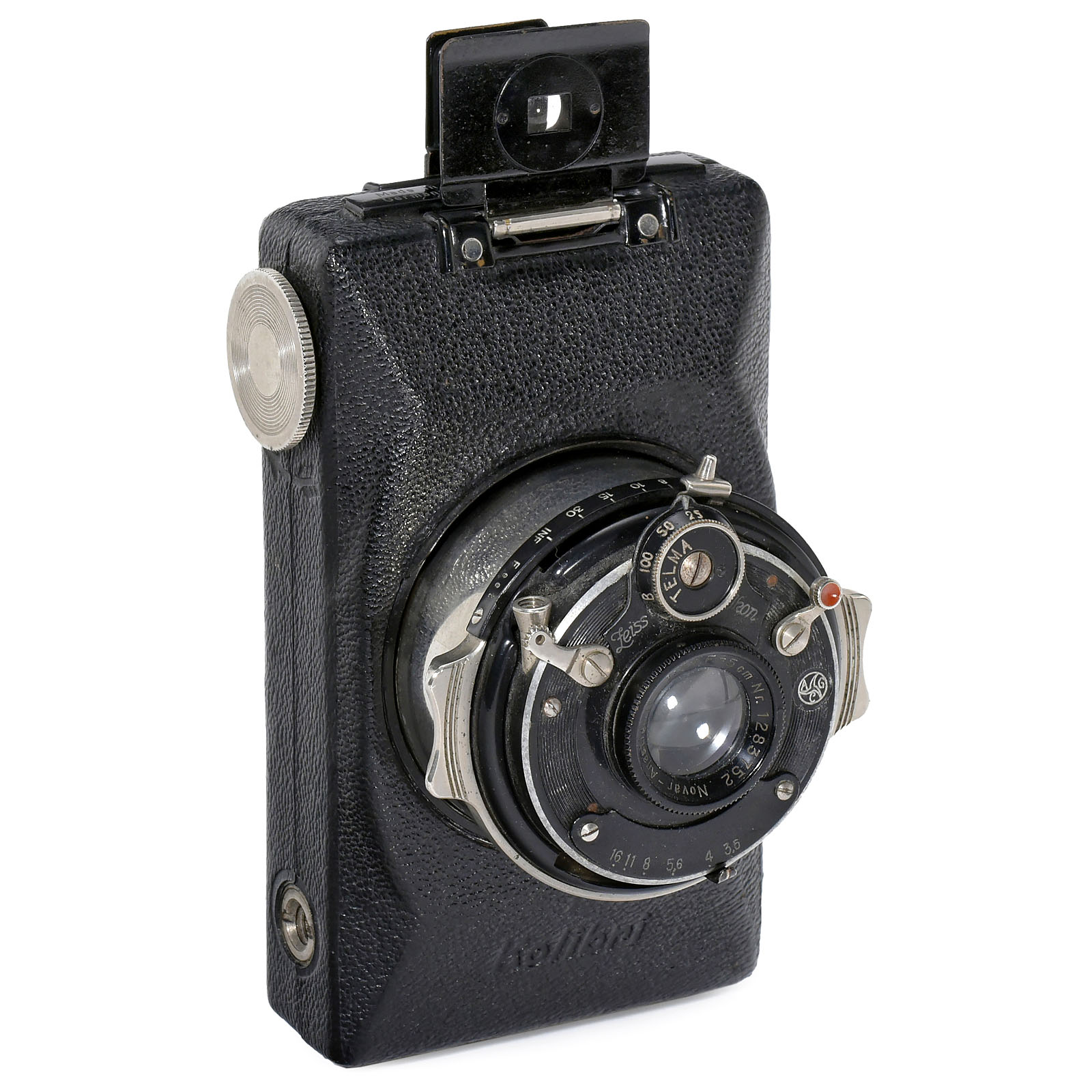 Zeiss Ikon, Dresden. No. S. 99366, size 3 x 4 cm on film 127, rare version with Novar-Anastigmat 3,5/5 cm in Telma shutter, without stand.